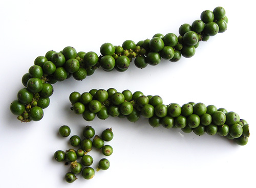 The black variety is milder and more aromatic than the white variety, while the green peppercorn has a special taste of its own. They are used as flavoring.